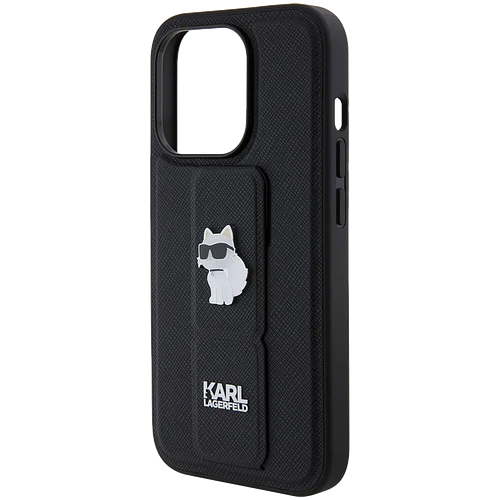 Lagerfeld для iPhone 15 Pro чехол GripStand PU Saffiano NFT Choupette metal Hard Black