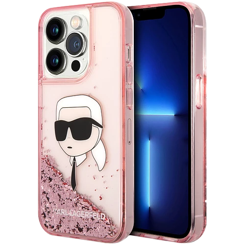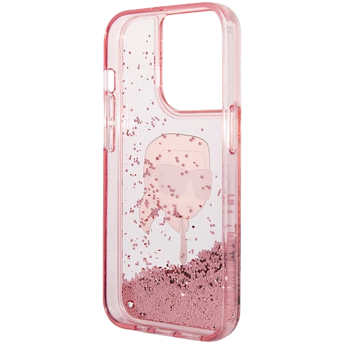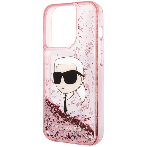 Lagerfeld для iPhone 14 Pro Max чехол Liquid Glitter NFT Choupette head Hard Pink
