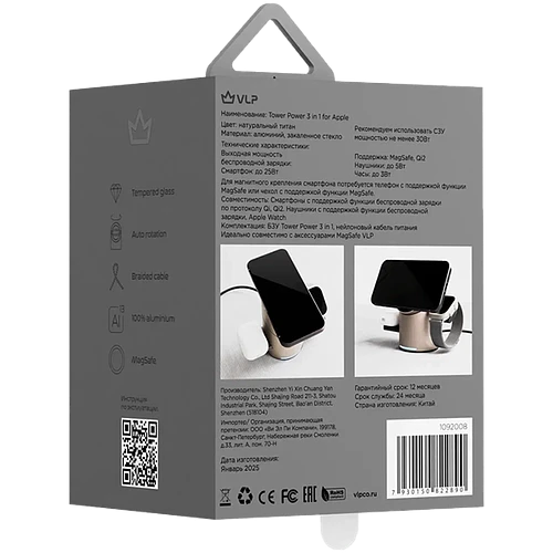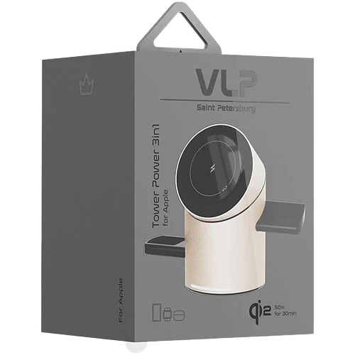 Характеристики Беспроводное зарядное устройство VLP Tower Power 3 in 1 для Apple, натуральный титан
