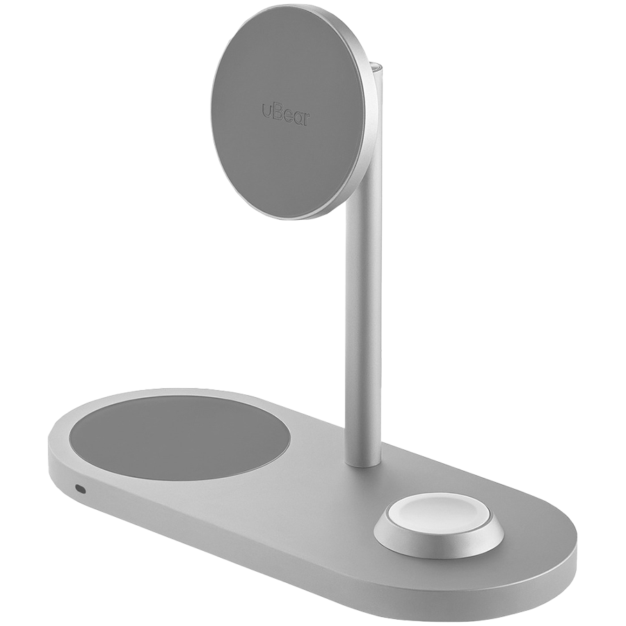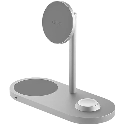 Беспроводное зарядное устройство uBear Stage Pro, 3-в-1, MagSafe совместимое, цвет: серебро