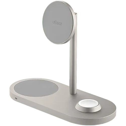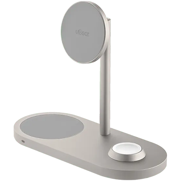 Беспроводное зарядное устройство uBear Stage Pro, 3-в-1, MagSafe совместимое, цвет: титан