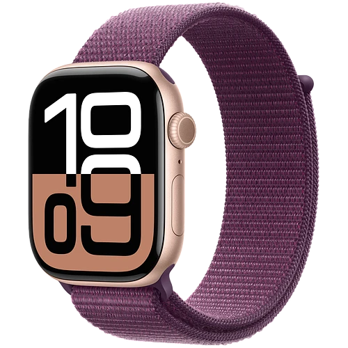 Apple Watch Series 10 GPS 46mm Rose Gold Aluminum Case with Plum Sport Loop