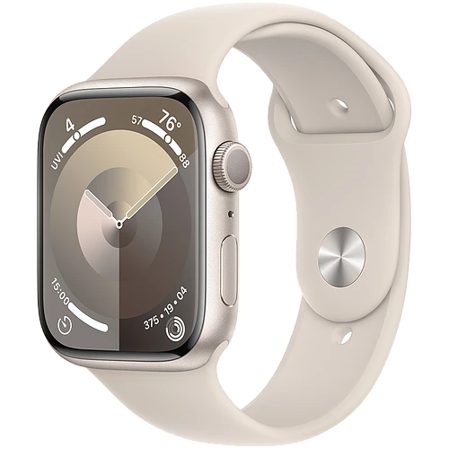 Характеристики Apple Watch Series 9 GPS, 45 мм, корпус - сияющая звезда, спортивный силиконовый ремешок цвета сияющая звезда M/L