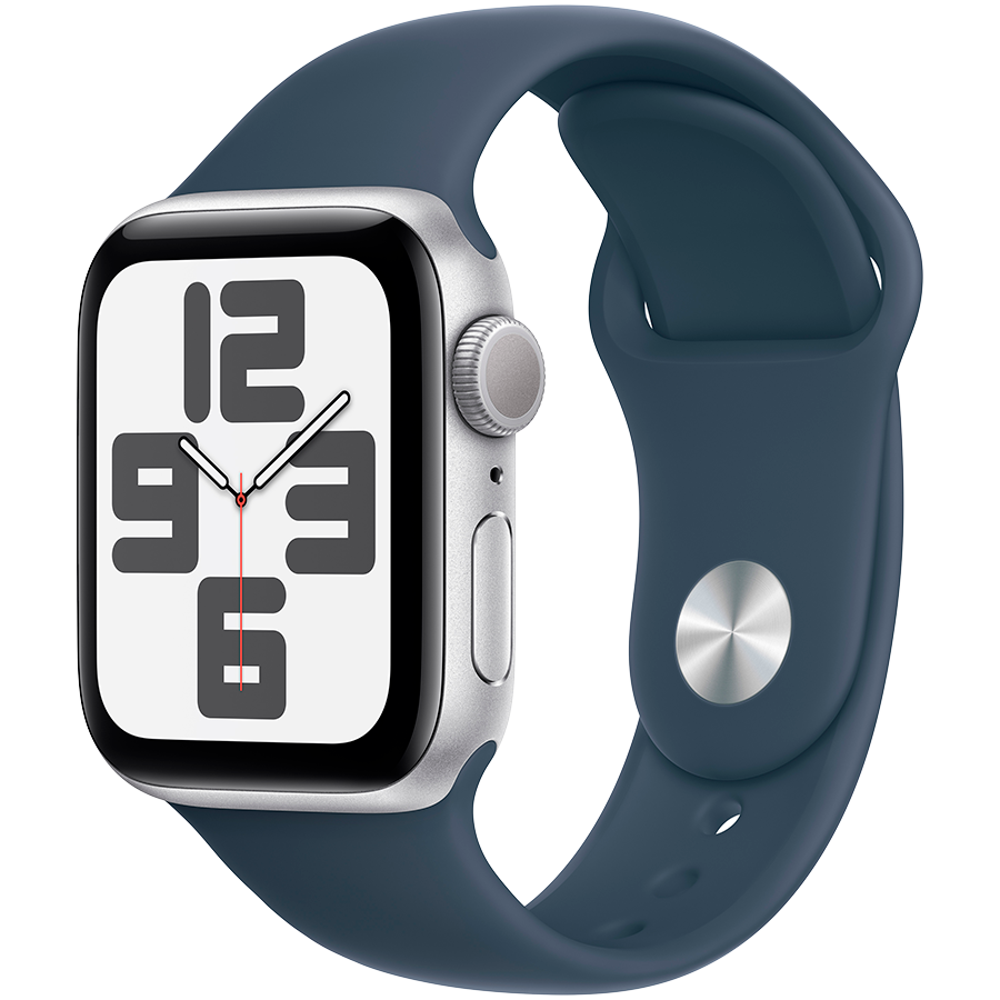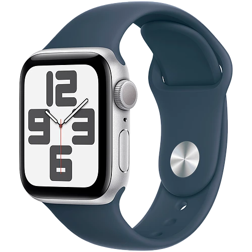 Apple Watch SE 2 (2023) GPS 40mm Silver Aluminum Case with Storm Blue Sport Band - M/L