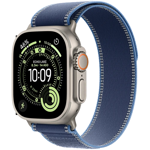 Apple Watch Ultra 3, GPS + Cellular, 49mm, Natural Titanium Case with Blue/Bright Blue Trail Loop - M/L