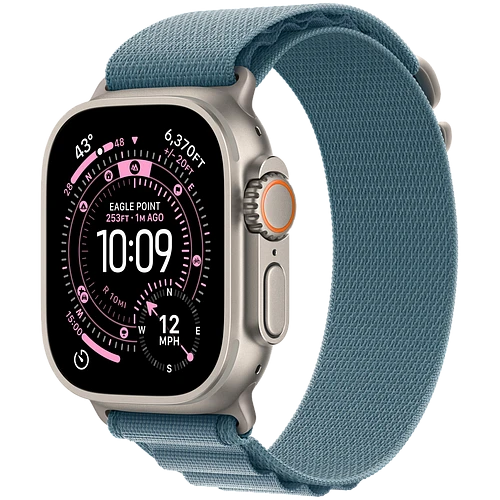 Apple Watch Ultra 3, GPS + Cellular, 49mm, Natural Titanium Case with Light Blue Alpine Loop - L