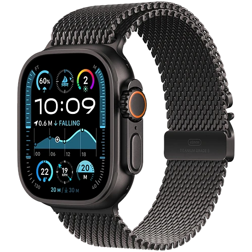 Apple Watch Ultra 2 2024 GPS + Cellular 49mm Black Titanium Case with Black Titanium Milanese Loop - L